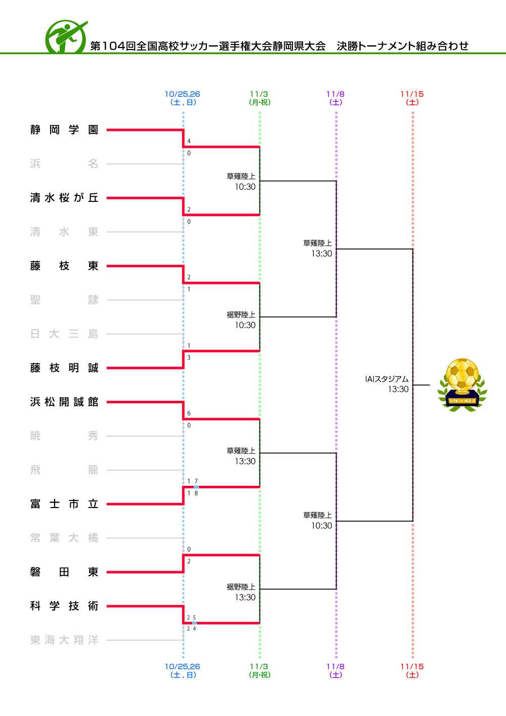 第104回(令和7年度)全国高校サッカー選手権大会静岡県大会・決勝トーナメントの結果です。